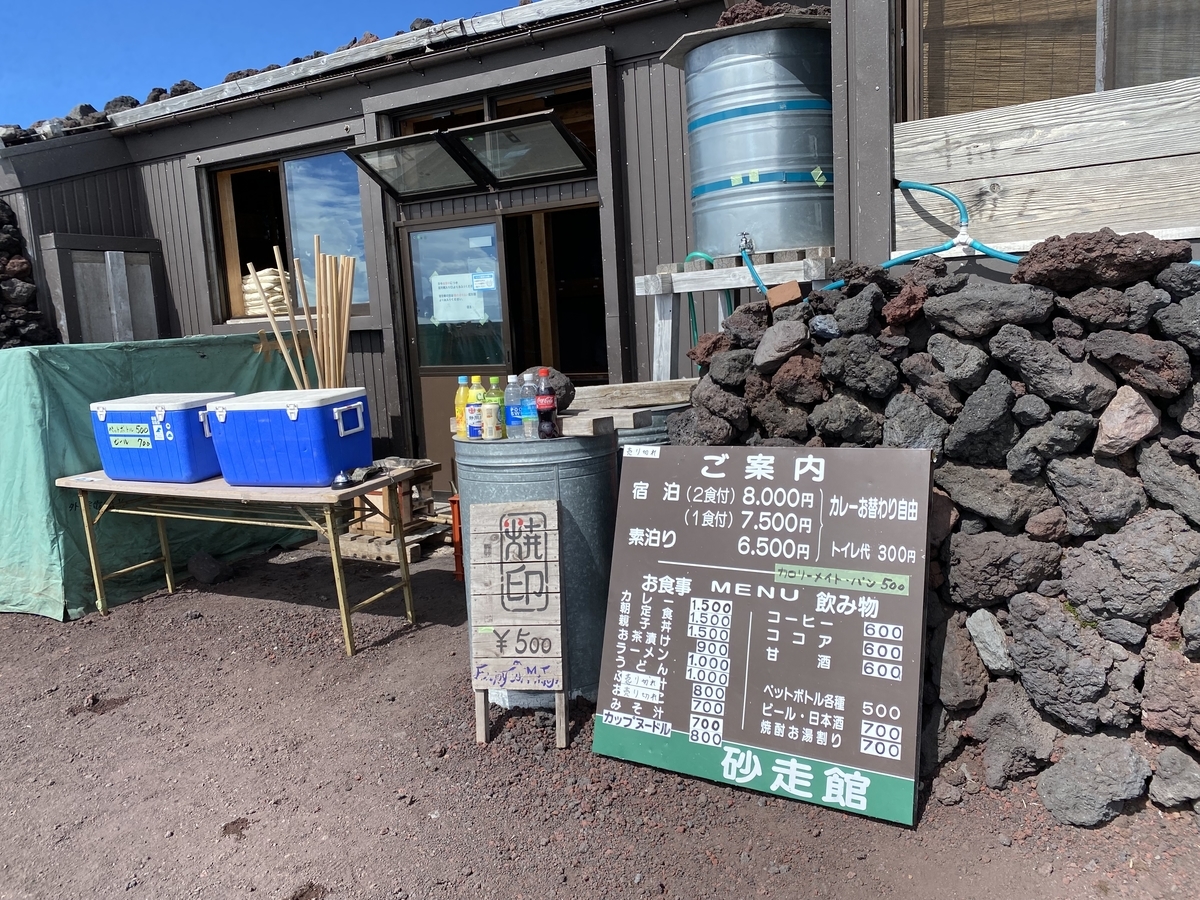 9:28 砂走館です。ここで、預けていた荷物を受け取り、スパッツをつけました。ゆっくり休憩してから、大砂走りを下る準備です。(砂走館では、宿泊者が登頂するときに、使わない荷物を預かってくれます。)